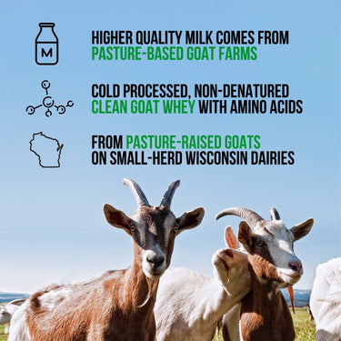 Naked Goat starts with small-herd dairy goat farmers using pasture-based farming methods to supply pure goats’ milk. We use careful manufacturing processes to create a non-denatured goat whey protein loaded with essential amino acids, glutathione, and of course, clean protein.